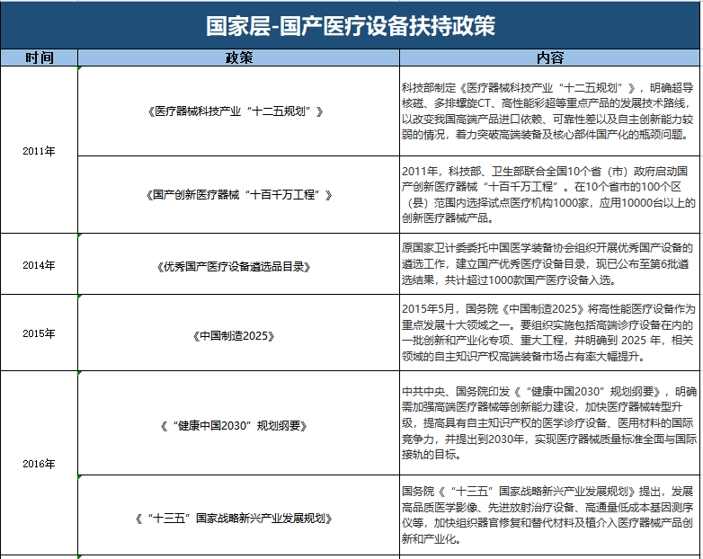 對此相關業內人士表示,本次采購甚至不排除后續會對國產設備的采購比例有更細節的指導要求。且這已不是國家首次大力推進醫療新基建建設,并支持國產醫療設備。