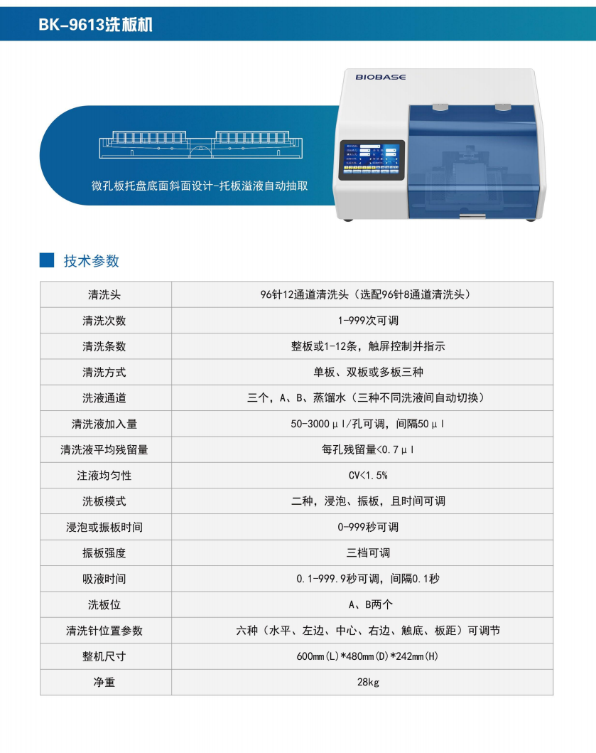 洗板機(jī)是專(zhuān)門(mén)清洗酶標(biāo)板的醫(yī)療器械,一般和酶標(biāo)儀配套使用。主要用于清洗酶標(biāo)板檢測(cè)后的一些殘留物質(zhì),從而降低后續(xù)檢測(cè)過(guò)程中因殘留物導(dǎo)致的誤差。它已經(jīng)被廣泛地用于醫(yī)院、血站、衛(wèi)生防疫站、試劑廠、研究室等存在酶標(biāo)板清洗工作的實(shí)驗(yàn)室。