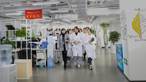 接下來,濟南護理職業學院師生一行先后參觀了共同體共享展廳及營銷中心等區域,學生對展廳內醫學檢驗、生物安全防護等一系列產品抱有濃厚的興趣。通過現場觀摩及講解,對所學專業及未來發展方向有了更清晰的認識。