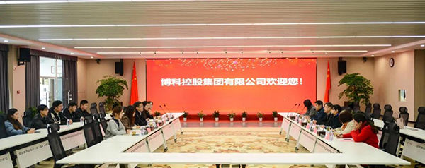 在副總裁袁文虎先生的帶領下,梁院長一行參觀了共同體共享展廳以及辦公區域,重點對公司產品、經營現狀、戰略規劃及園區發展情況進行了介紹。梁院長對博科近幾年的飛速發展表示震撼,并對企業發展前景充滿信心。隨后,雙方座談交流,梁院長就學校專業設置情況進行了詳細介紹,并表示博科集團業務領域與學校眾多專業匹配度較高,希望從建立穩定的聯絡機制開始進行資源互通,深化合作共同促進產教融合。