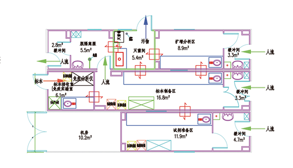 臨床基因擴增檢驗實驗室(PCR實驗室)設計的核心問題是如何避免污染。因此,實驗室的平面布局、空調通風系統設計、氣流控制等都是圍繞這個核心問題進行的。