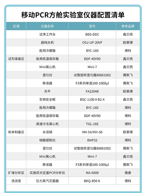 簡單來講就是用方艙搭建一個符合PCR實驗室建設標準的場所,將相關設備放到方艙內,形成可以移動的簡易PCR實驗室。別看是簡易實驗室,但是方艙內的設備可是一點都不簡易,可以說是“麻雀雖小,五臟俱全”。