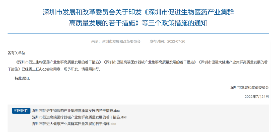 7月26日,深圳市發改委發布了三條重磅政策措施,包括《深圳市培育發展大健康產業集群行動計劃(2022-2025年)》《深圳市促進生物醫藥產業集群高質量發展的若干措施》《深圳市促進高端醫療器械產業集群高質量發展的若干措施》》,從生物醫藥、高端醫療器械、大健康產業3個方面入…